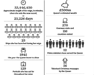 “在过去超过63年时间里,世界瞬息万变,但女王陛下稳如磐石,她(为英国民众)无私奉献的意识不仅在国内受到钦佩,更得到世界赞誉,”英国首相戴维·卡梅伦说,“我们必须庆祝女王非凡的记录以及她为国家带来的……尊严。”