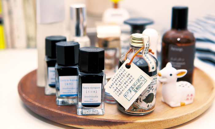 木托盘里既有酱油瓶也有墨水瓶,Connie说这么摆主要是为了好看。