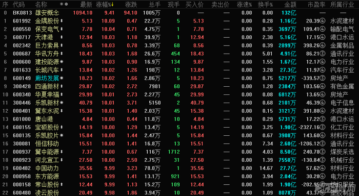 虽然现实与目标还有巨大差距,但是借着雄安新区的“春风”,相关概念股纷纷“飞”了起来,金隅股份、中化岩土、保变电气、华夏幸福、天津港、先河环保、巨力索具等率先涨停,涉及的行业包括房地产、建材、钢铁、铁路、机械、交运、环保、水泥等。