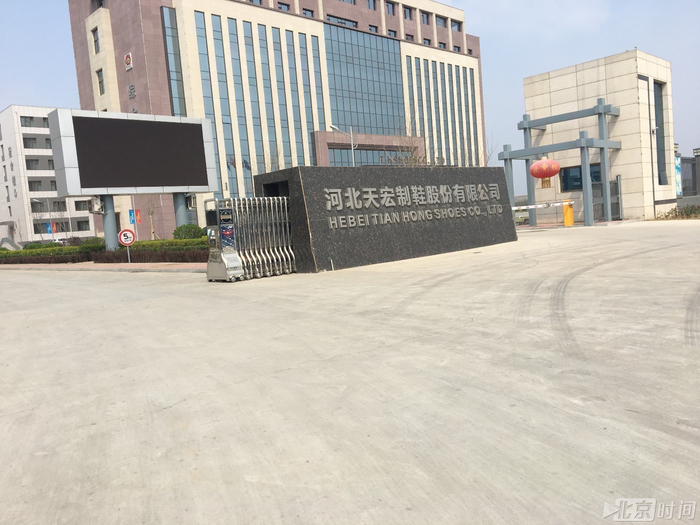 此外,安新县辖区内的另一家新三板挂牌企业便是当地最大的制鞋企业——天宏股份。当北京时间“财镜”来到位于安新县三台镇的天宏股份时,恰逢厂区停电,除了寥寥数位职工之外,占地50余亩、建筑面积5万余平方米的工厂之内几乎看不到人影。
