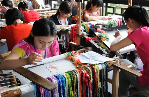 “1970年代主要做出口,日本的和服腰带、台布等等。1990年代以后,完全进入中国人群中。这几年就特别流行旗袍、衍生品,包括装饰艺术。”卢福英说。