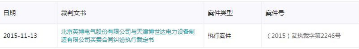 扣分理由:在2015年的时候,英博电气起诉天津博世达电器设备制造有限公司,原因是买卖合同纠纷,但具体金额没有透露。