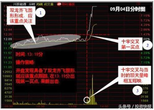 6、出现双龙出海现象,务必以超短线的方法来操作,而且介入的速度要非常快,一般以双龙出海形成为即时买入时机。