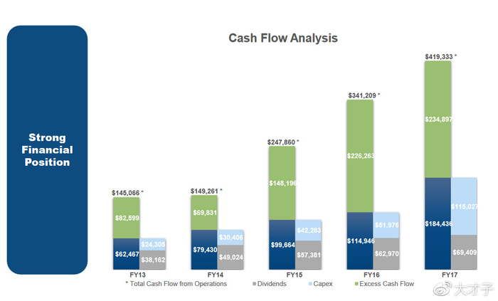 再回到Thor这家公司,这个行业市场相对比较集中, 我们说的龙头企业Thor industries,拥有Airstream,Keystone,Jayco等这些知名品牌。从类型来看,房车分为两种,拖挂式和自走式,顾名思义一种是没有动力装置的需要有个车来拖着走的,还有一种是自己有动力的,一般有个巴士底盘或者卡车底盘,而房车是背在身上的。自走式又按照从大到小分了A,B,C三个等级。拖挂式是房车的主流,占了市场的70-80%左右,自走式相对来说只占小头。可能是因为自走式价格相对来说比较昂贵的原因,A级的自走式基本都是由一辆巴士作为地盘而改装的,而价格可以达到百万美元这个级别。Thor是这个行业中的绝对霸主,市占率高达50%,竞争对手Winnebago industries目前实力还是远不如Thor。