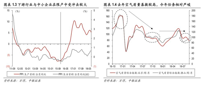 政策变化的意图涉及实体经营困难、基建项目推进较慢与通胀压力、今年空气质量达标任务艰巨等多方面原因。如果政策变化,可能有三方面的原因。第一,近几年的供给侧改革开始,虽然缓解了上游产业的供给过剩和亏损问题,但是也使得上下游的利润分配出现分化,下游企业成本上升,经营出现一定困难,环保限产加剧了这一问题。此外,“一刀切”的政策也让许多中小企业被强制关停,在经济下行压力下中小企业生存环境堪忧。第二,今年基建项目推进较慢,部分原因与环保要求高有关,此外,下半年如果基建需求回升,大面积限产也可能推高价格,对通胀形成进一步压力。第三,2017年冬季空气质量达标情况较好,今年空气质量基础整体不如去年,从任务完成的角度看,今年适当调低指标要求,是比较切实的做法。