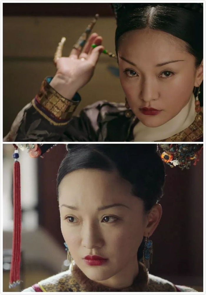 比如如懿一生的妆容,都会随着剧情变化而变化。年少时如懿的眉毛弧度有柔和的下垂,但后期逐渐心凉后,如懿的眉毛越发上扬,体现了她的孤傲。