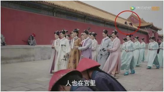 又比如第十二集,太监日常打扫修缮宫宇,注意右上角在屋顶上的两个太监,导演什么都拍了。
