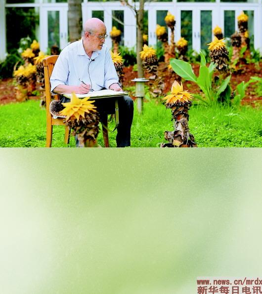 曾孝濂7月14日在昆明植物园写生。本报记者周磊摄