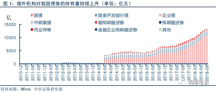商业银行和广义基金仍是债券持有量的主要增量资金来源,与此同时境外机构的边际影响逐渐增大。从债券持有机构看,商业银行和广义基金(主要包含基金及其他非法人机构产品)仍然是主要增量资金来源。但是在监管总基调不变的背景下,2018年广义基金持债规模的增量较去年有所收窄。在持债品种上,商业银行对国债、政策性金融债持有比例仍较高,且随着银行负债压力增大,同业存单发行量增加。8月之后地方政府债发行放量,压缩了商业银行持有其他债权的空间。信用债和同业存单仍是广义基金的主要持有券种,除了在5月和6月受违约事件不断爆出的影响减持信用债外,广义基金在其他月份均增加了对信用债的持有规模。值得关注的是今年以来境外机构积极参与国内债券市场,其持有债券的增幅已经超过商业银行和广义基金之外的其他机构,主要因为一方面,受免税、放开境外机构参与国内评级业务等债券市场等政策增加了境外机构参与的热情,另一方面,境外机构对于国内债市的信心也有所回升。