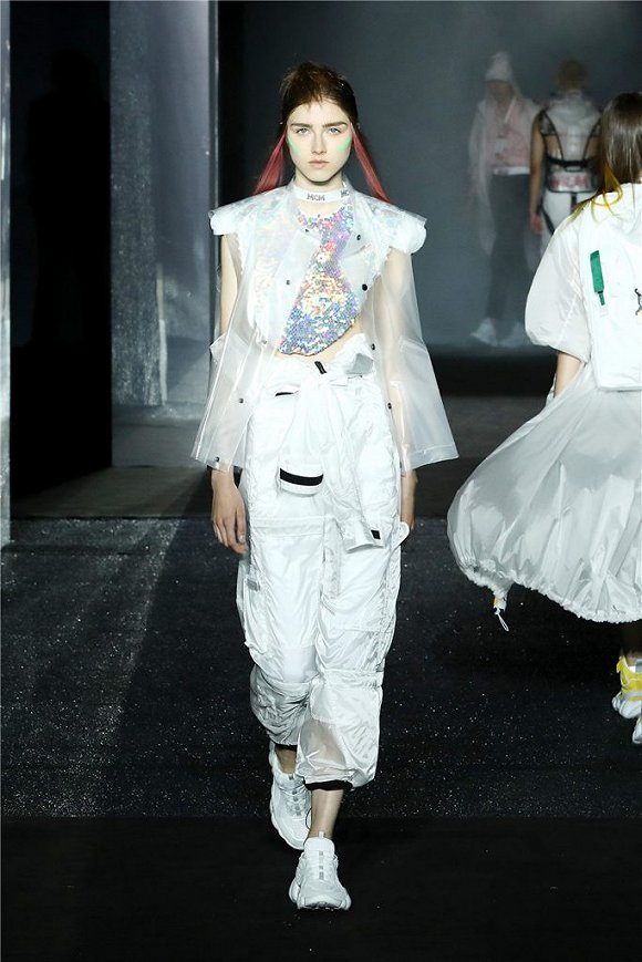 MCM 2019春夏包含一系列的成衣和配饰单品。设计师在新型超轻防风丝绸和防撕裂布料上注入亮黄、纯白、鲜红、天蓝等多种色彩,以利落的裁剪和熟练的工艺将不同材质的面料拼接、扭转并最终创造了一个新潮的“当代游牧民族”形象。