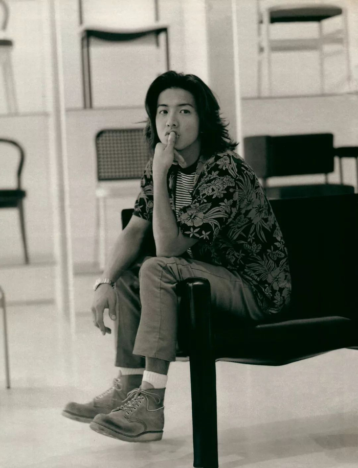 他出道时候的很多照片,以今天的标准,像素都低了,但是他的脸似乎自带高清模式,因为他的眉在眉应该在的地方,眼在眼最应该的地方,嘴就更是,亚洲男人中,他的嘴最好看。