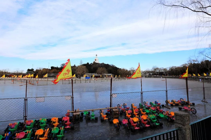 什刹海冰场的项目也非常丰富,有冰车、冰鞋、冰上自行车、冰上摩托车、儿童乐园等,所以会玩的一双冰鞋即可畅滑什刹海,不会玩儿的坐冰车也很有意思。