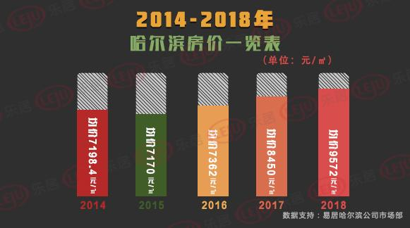 2014年哈尔滨房价平均7198.4元/平,而到了2018年,哈尔滨房价达到了9572元/平,根据统计, 5年的时间,房价上涨了2373.6元/平,涨幅高达33%。