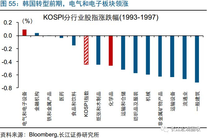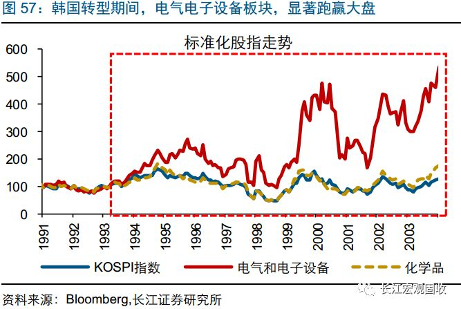 韩国转型期间,电气电子、化学品板块跑赢市场