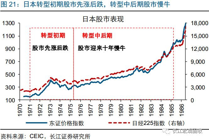 中国当前所处的经济转型阶段,与1970年代末的日本、1990年代初的韩国 高度相似。回顾日、韩转型期间资本市场表现,对我国未来一段时间的投资,具有重要的指示意义。