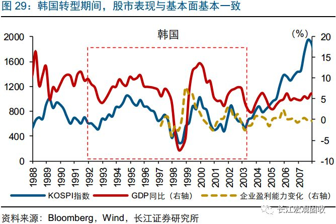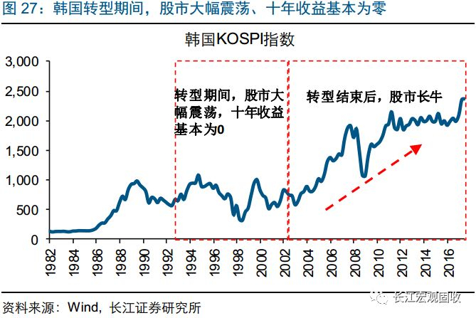 韩国转型期间股市大幅震荡,转型成功后迎来长牛