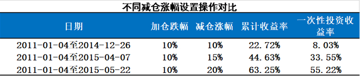 也就是说,如果对市场上升后劲有足够的信心,可以再增大减仓涨幅,延后减仓时间点。