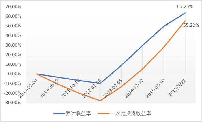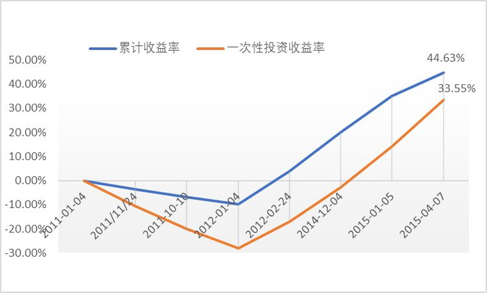 我们都知道2014年6月到2015年6月是一个大牛市,理论上越接近2015年6月减仓,收益率就会越丰厚。