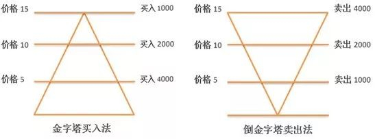 倒金字塔卖出法:与正金字塔型相反,随着价位的上升,卖出数量逐渐增多,以赚取更多的差价收益。
