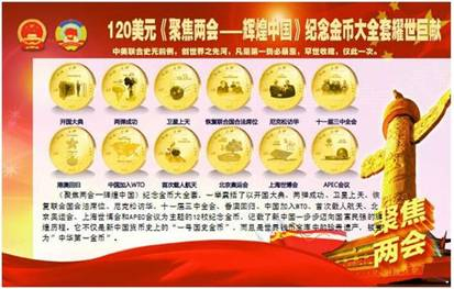 这几张图片极力吹捧的,一个是所谓的“两会纪念币”,另一个是所谓的“十二生肖兽首银币”,而且均由“美国金币总公司荣誉出品”。