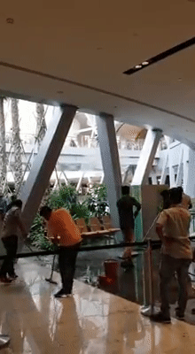 这位网友在拍摄视频的时候还嘟囔着“waterfall”(瀑布)……下面请看完整视频,感受一下这个“室内瀑布”。