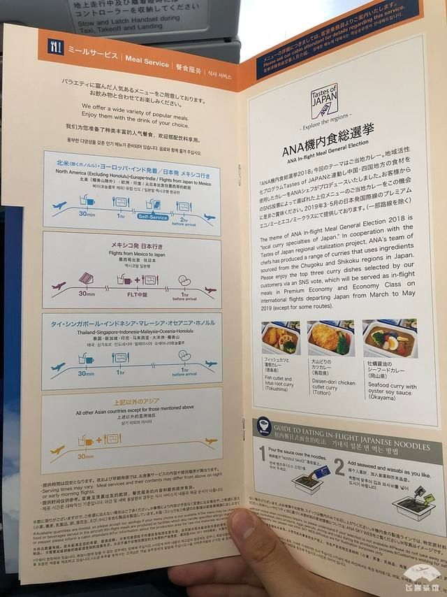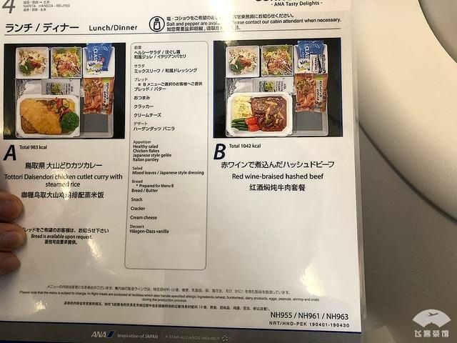 这里大赞ana对于经济舱的餐食酒水指南服务。