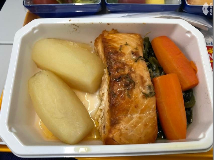 健康到不行,不过主菜的一大块鱼肉健康而且味道不错。面包没有加热。差评!