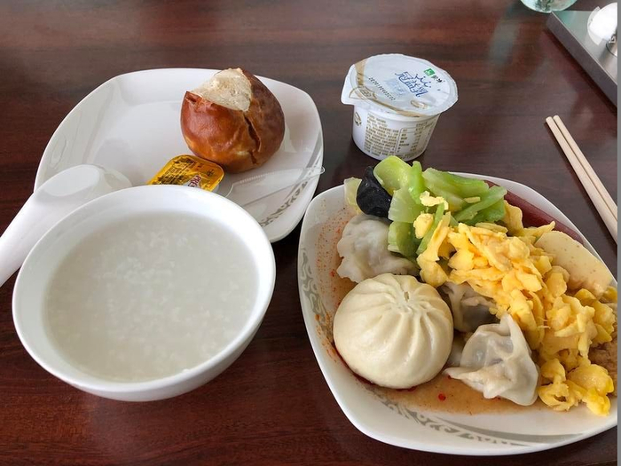 进入国航大食堂吃点早饭,中餐看着很low。但是稀饭包子就是那个味道~