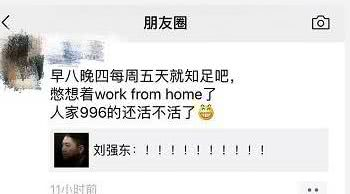 刘强东则在朋友圈用25个感叹号更新了“地板闹钟的故事”,称京东永远不会强制员工995或者996,但是每一个京东人都必须具备拼搏精神。