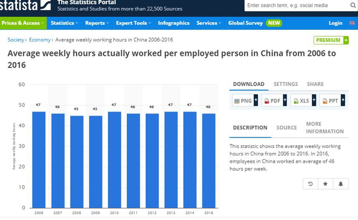 2018年6月.美国劳动统计局称(The Bureau of LaborStatistics ),美国人周平均工作在34.5小时,根据国外权威统计网站statista 公开资料显示,中国在1996-2016十年间,周平均工作时长在45-47小时之间浮动,2018年中国平均周工作时间甚至达到了49.5小时。远远超过美国等发达国家和过劳时代的标准。