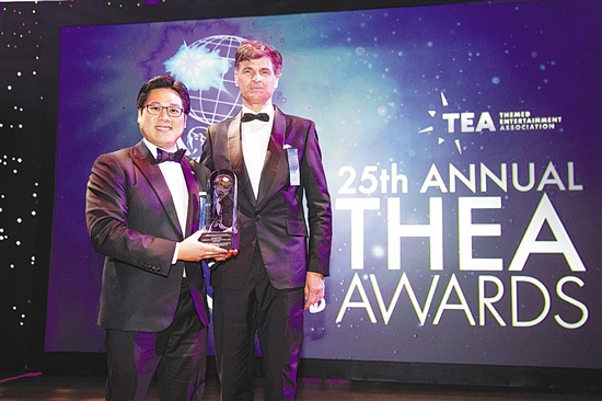 美国洛杉矶当地时间2019年4月13日晚,第25届世界主题娱乐协会(Themed Entertainment Association,以下简称TEA)年度颁奖典礼在洛杉矶隆重举行。长隆集团旗下的广州长隆水上乐园呈献的全球首台“摇滚巨轮”获颁TEA“杰出成就奖”。长隆集团副总裁苏展鹏上台领奖。