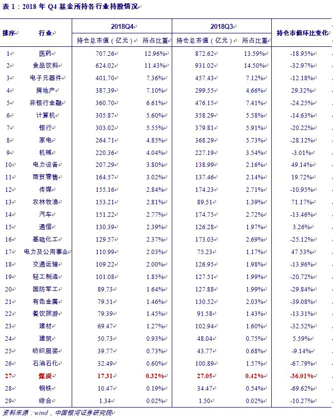 1.2018Q4基金煤炭持仓处于历史较低水平