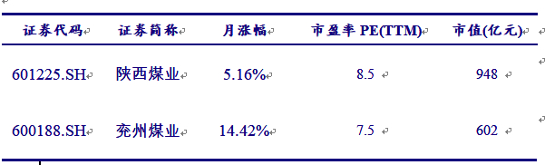 1.煤炭行业市盈率向上还有一定修复空间