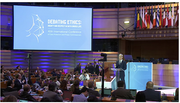2018年10月,苹果CEO库克在布鲁塞尔会议上提出希望美国学习GDPR的榜样。图片来源:YouTube