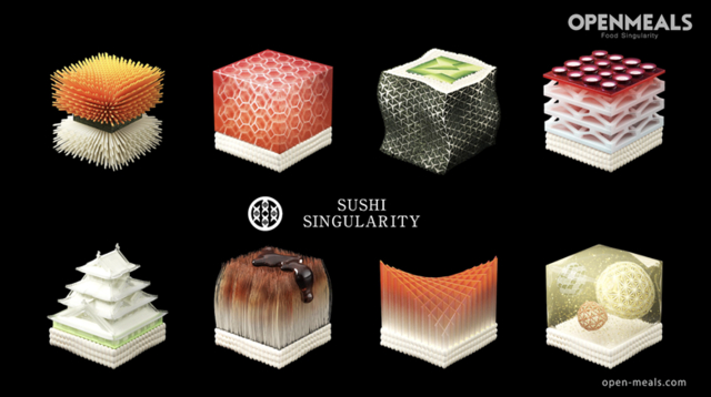 日本Open Meals食品公司在去年展示的运用3D打印技术的像素寿司打印机也“技惊四座”。这种打印机在食用凝胶组成的微型立方体中,注入不同味道、颜色及营养,再打印成各种寿司。