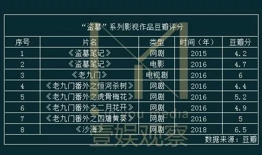 “盗墓”系列影视作品豆瓣评分