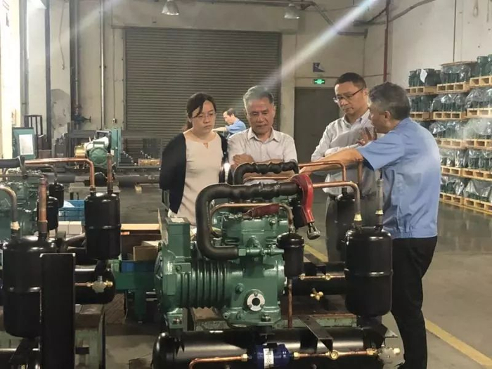 2019年6月5日上午,海立集团董事长董鉴华、副总经理兼海立中野董事长冯国栋和海立集团副总经理、财务总监袁苑一行,赴海立中野指导工作,并深入生产一线了解生产情况。海立中野总经理撒涛和副总经理张志敏陪同。