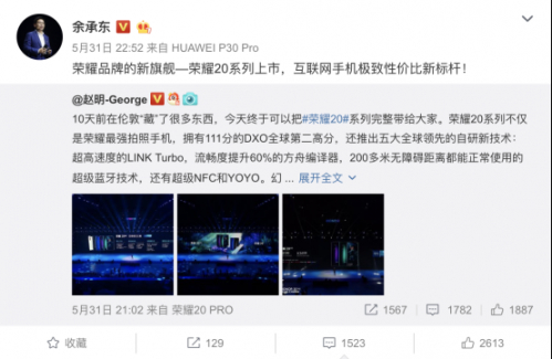 1、3秒钟,荣耀20 PRO首销突破一亿元