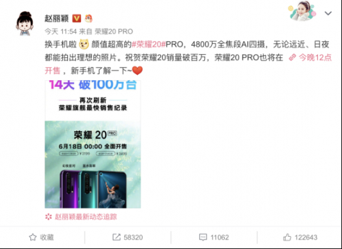 4、14天,荣耀20销量突破百万台,创荣耀手机最新销量速度记录