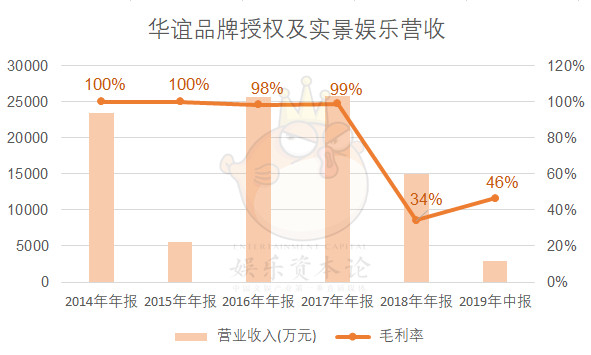 单从数据上看,2014到2017年间,华谊实景娱乐板块以几乎无成本的代价获得了丰厚的利润,利润率高达100%。有媒体称之为“不花钱的明星生意”。