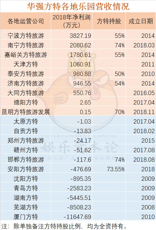 娱乐资本论矩阵号河豚文旅(ID:hetunwenlv)曾经报道过,事实上,华强方特位于各地的主题公园运营公司中,有一半左右处于亏损的状态,其中厦门方特2018年亏损超1亿元,芜湖方特2018年亏损8500多万元……华强持续盈利的秘密在于影视收入——方特电影和方特动漫则分别贡献了5.85亿元、1.90亿元的净利润。前者负责供给园区的特种电影影片开发制作,后者负责数字动漫作品创意、制作及发行。