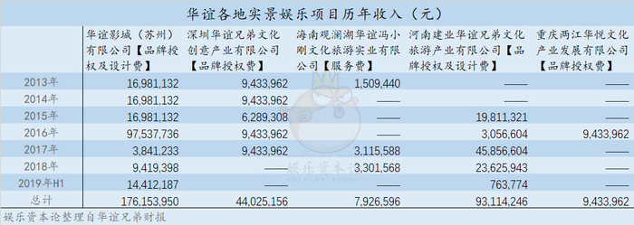 这主要是因为项目先期的品牌授权收入,几乎不需要投入成本。之前各个项目,华谊的占股大多在百分之十、百分之三十,而这部分出资也多是“认缴”,实际上是没有出资的,苏州华谊电影世界,是华谊实景娱乐旗下唯一一个持有资产的项目。