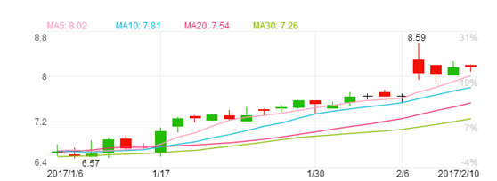 受利好消息刺激,嘉盛股价2月7日直接跳空高开,收盘8.06美元/股