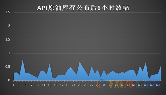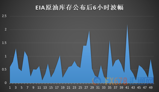 我们通过统计两项库存数据公布后6个小时市场的波动幅度,以期找到这两项数据公布后给市场带来影响的一些规律。