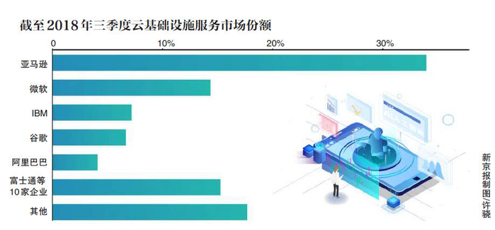市场机构Synergy Research的数据显示,截至2018年第三季度,谷歌云基础设施服务的市场份额只有7%,远低于亚马逊AWS和微软Azure,甚至不如云转型不利的IBM。在一些第三方机构如Gartner的统计中,凭借中国本土市场优势逐步向海外扩张的阿里云也在超越谷歌。