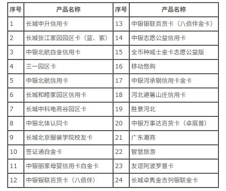 7月16日,中国银行公告称,因业务调整,自2025年8月31日起,将停止发行部分信用卡产品,并调整信用卡产品卡面,此次涉及24款信用卡产品,涵盖联名合作类、主题特色类等多个类别。