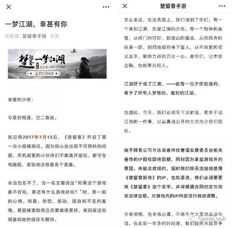 游戏圈出了一个不大不小的新闻,网易旗下的经典MMORPG手游《楚留香》,宣布改名为《一梦江湖》。