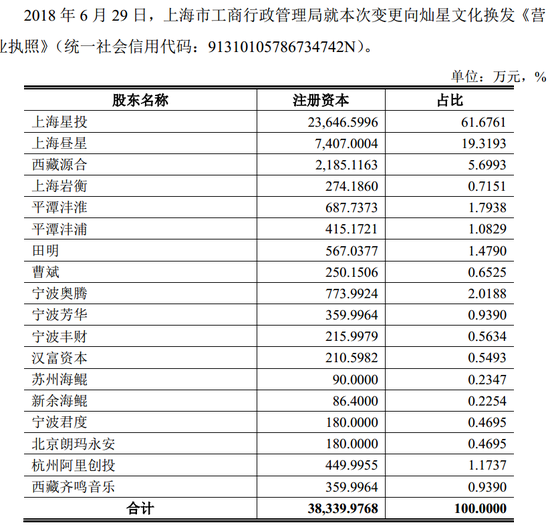 灿星文化目前公布的股东名单堪称豪华。