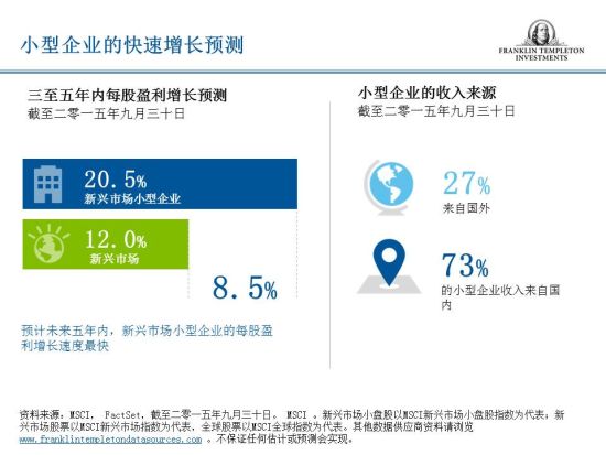 [2]资料来源:MSCI,Russell2000®指数,截至二零一五年六月。其他数据供应商资料请浏览www.franklintempletondatasources.com。指数未经管理,不能直接投资指数。过往表现不能保证将来结果。