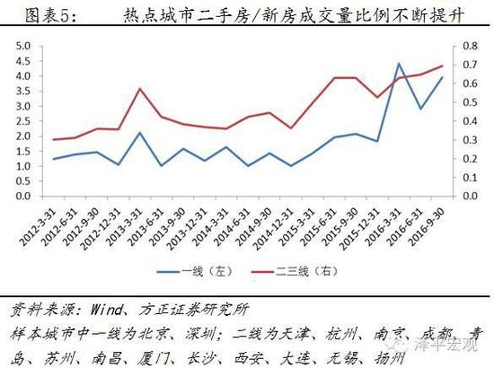 从15个样本热点城市的成交数据中,可以看出二手房成交量/新房成交量数值不断提升。北京和深圳从2009年开始,二手房成交量就已超过新房成交量,步入存量房时代;2012年到2016年9月,二手房/新房成交量比值由2提升至4。重点二三线城市这一比值从2015年初开始迅速提升,目前已到0.7的水平;部分城市的核心区域已步入存量房时代。